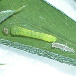 | 大きいほうのキチョウの幼虫が脱皮しま した。 3齢だと思います。体長は1センチ |