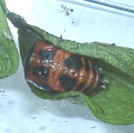 | 無事にテントウムシが羽化しました。体はまだちょっと平べったい感じです。 | |