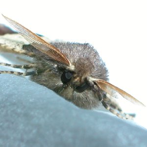 | 開張30〜35ミリ。♂の触覚は櫛歯状、♀は糸状で極めて短い微毛があります。 前翅外横線で境される外縁部は褐色、この縁は内側に強く湾曲して横脈点に達することもあり ます。 |