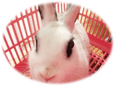 小さい時に使っていた木馬にうさこを乗せてみました。 かなり緊張しているようで固まっています。 目は座っています。ちょっと怖いです。 |